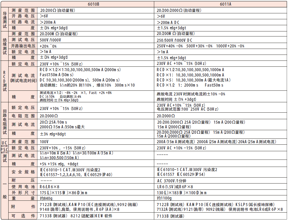 日本共立 MODEL 6010B/6011A多功能測試儀 相關參數: