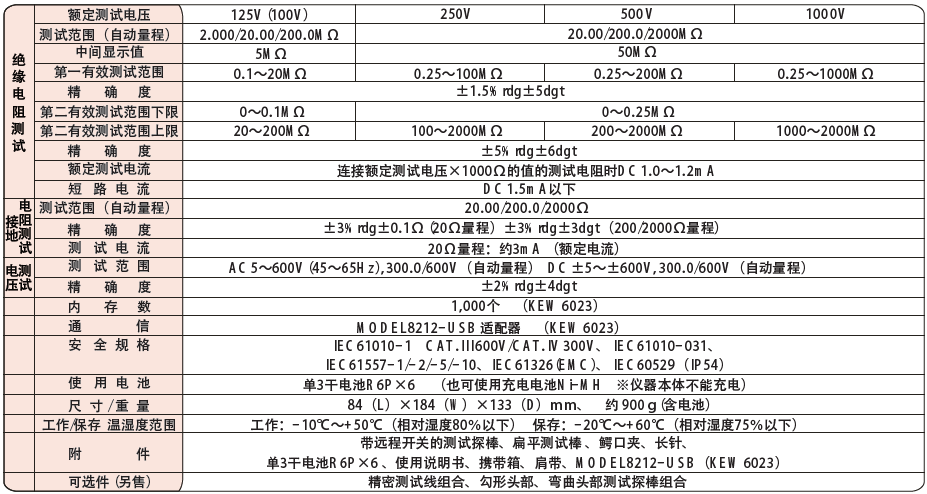 日本共立 KEW 6022/6023多功能測試儀 相關參數: