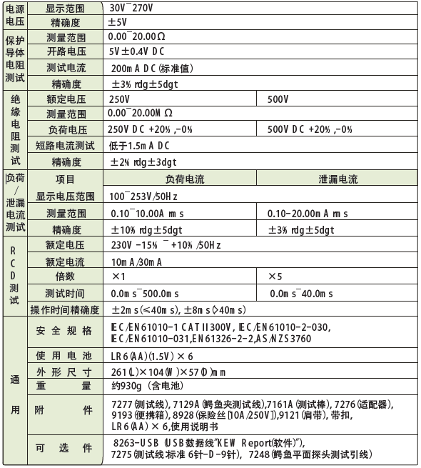 日本共立 KEW 6205安規(guī)測試儀 相關(guān)參數(shù):