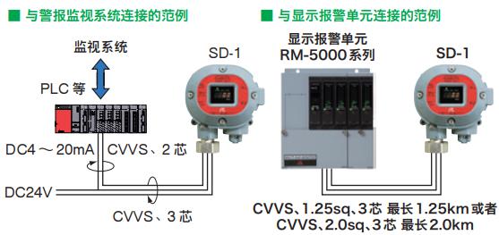 在電源(DC24V)和氣體濃度信號(hào)(4-20mA DC)的情況下,連接電纜為3芯。使用接點(diǎn)輸出時(shí)為5芯。