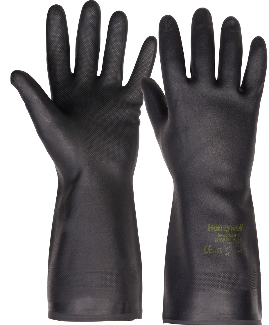 霍尼韋爾 氯丁橡膠防化手套(短、長兩款) 產品特點: 產品設計用來操作各種化學物質,如腐蝕性的酸、酒精和油脂等。在日常操作、維護和清潔工作中都已廣泛使用 ? 黑色單層氯丁橡膠手套有棉襯里 ? 表面有鉆石形紋路,抓物性能更出色
