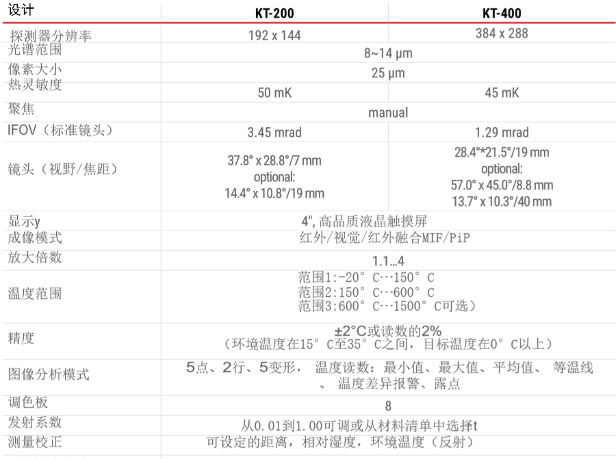 波蘭SONEL(索耐) KT-400 / KT-200熱像儀 相關參數: