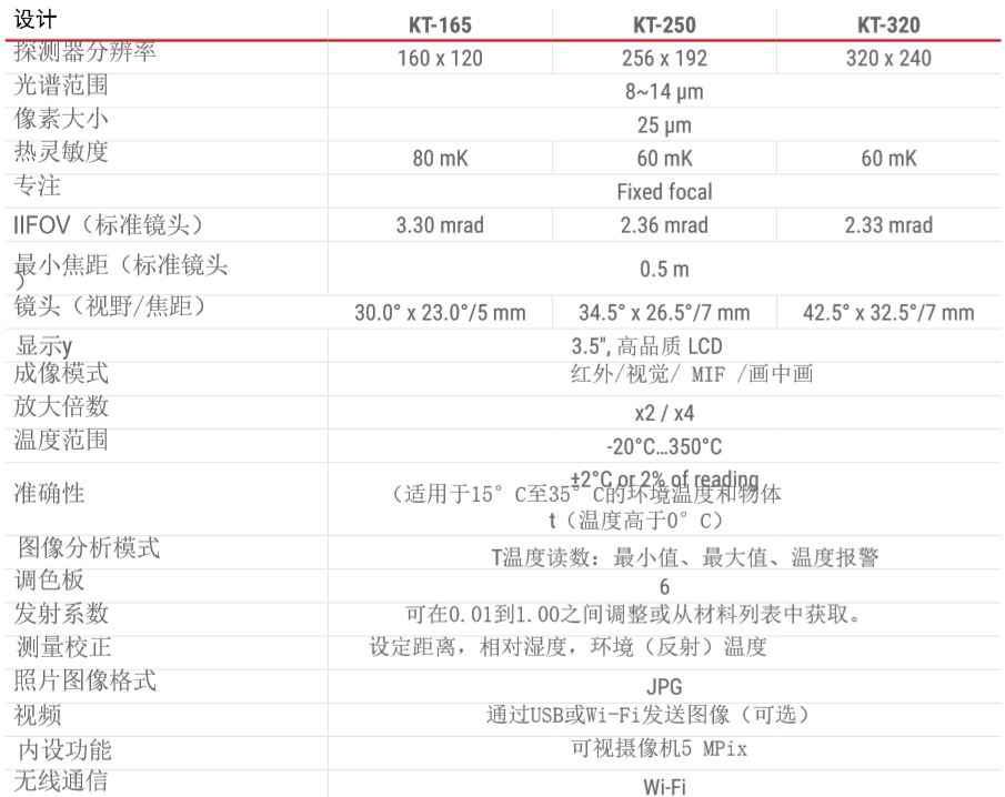 波蘭SONEL(索耐) KT-320 / KT-250 / KT-165熱像儀 相關參數: