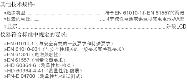 波蘭SONEL(索耐)MIC-10 絕緣電阻表 相關(guān)參數(shù):