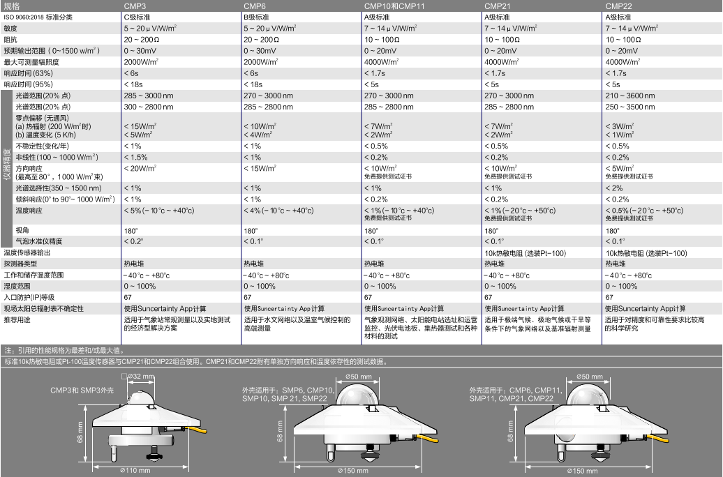 CMP 21是一款高性能科研級總輻射表,完全符合ISO 9060:1990副基準中規定的各種儀器性能要求(目前最高的ISO總輻射表性能類別)。