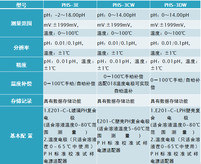 齊威 PHS-3E/3CW/3DW微機型臺式PH計 產品參數:
