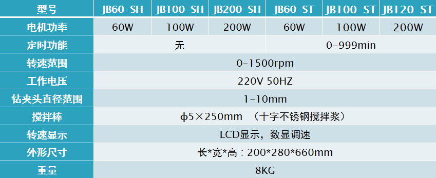 齊威 JB-SH/JB-ST系列數顯增力攪拌機 產品參數: