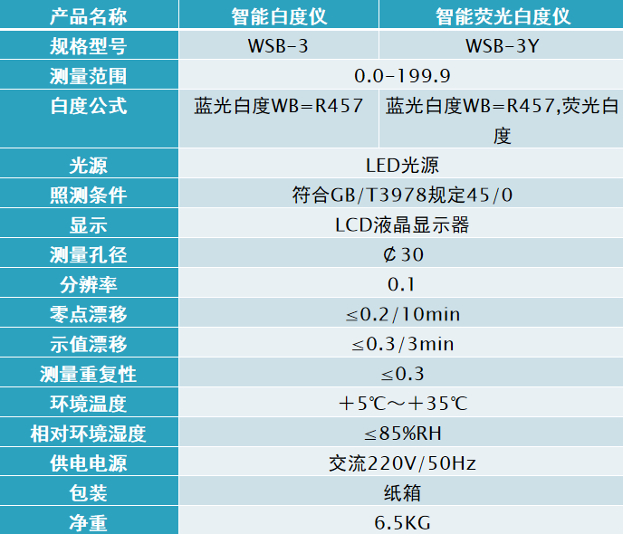 齊威 WSB-3/WSB-3Y臺式微機(熒光) 白度儀 產(chǎn)品參數(shù):