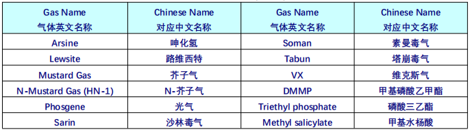 部分大規(guī)模殺傷性武器Weapons of Mass Destruction (WMD) 神經(jīng)毒性氣體表如下: