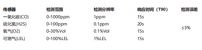 傳感器配置 LEL/O2/CO/H2S