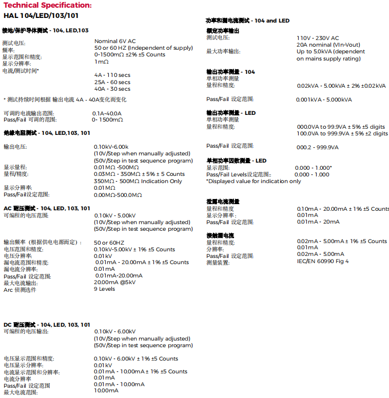 HAL 103是一款綜合測試儀,能夠執行介電強度,保護導體和DC IR測試。