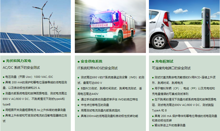 在許多應用中,必須測試電氣系統中安全措施的有效性,并且必須根據官方機構,運營公司和保險公司制定的法律和法規進行測試。