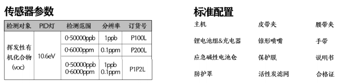 日本RIKEN(理研) 便攜式VOC檢測儀P100L/P200L/P1P2L 配置參數(shù):