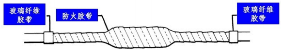 半重疊繞包,使防火膠帶與被包裹電纜貼和緊密、無褶皺;當(dāng)新開一卷防火膠帶時(shí),一般須從先前一卷的 100~150mm 處開始繞包。 PL-1624 防火膠帶沒有膠黏劑,一般用裝箱中所配的防火玻璃纖維帶固定后才算完成。