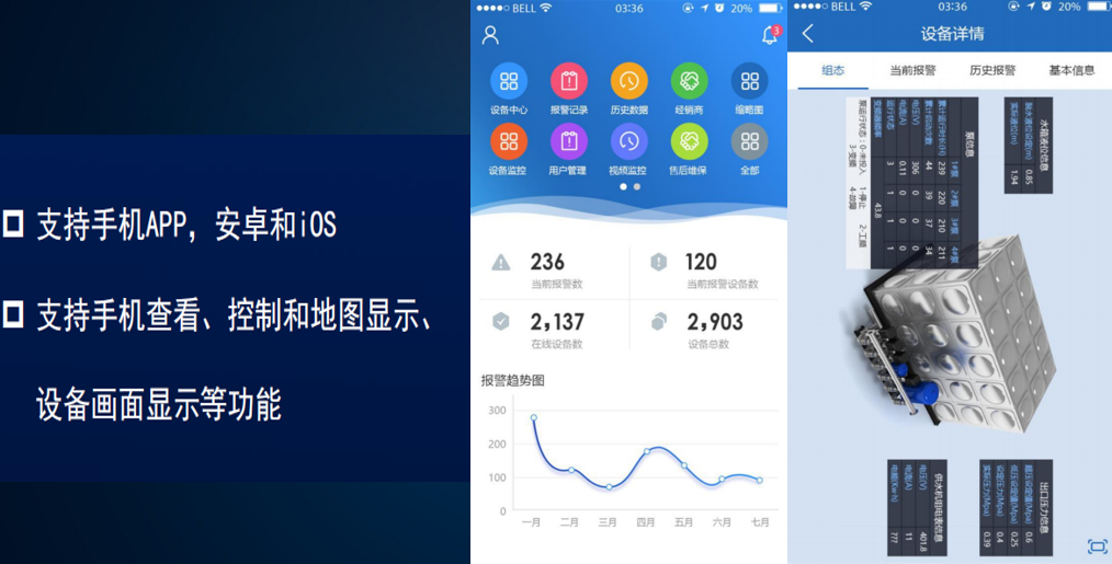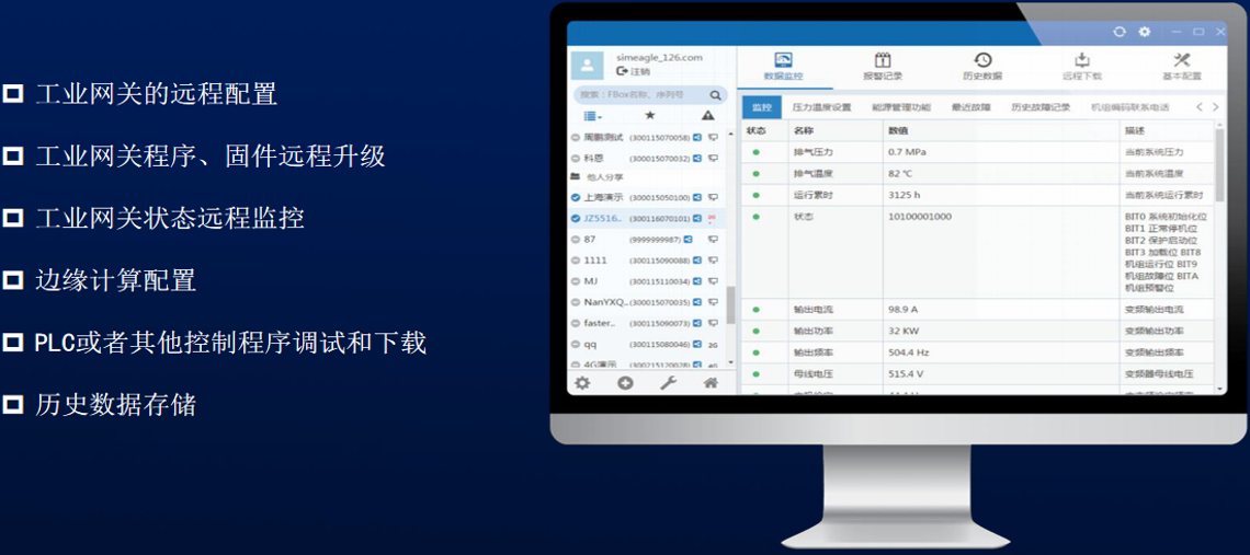 三、數據遠程監控,可以通過網頁或手機APP實現設備數據監控,第一時間了解設備運行狀態,修改參數等。
