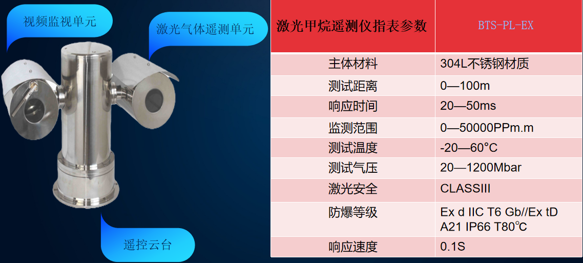 BTS-PL-EX燃氣廠站固定式激光甲烷云臺遙測儀 產品優勢: