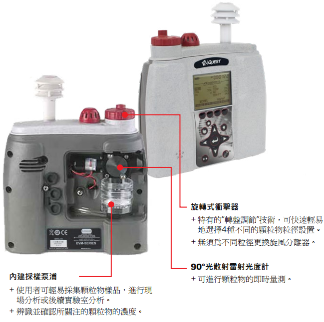 TSI Quest EVM環境監測儀可同時對顆粒物和氣體濃度進行實時測量。這些監測儀可測量有毒氣體、揮發性有機化合物(VOCs)、相對濕度、溫度和風速。