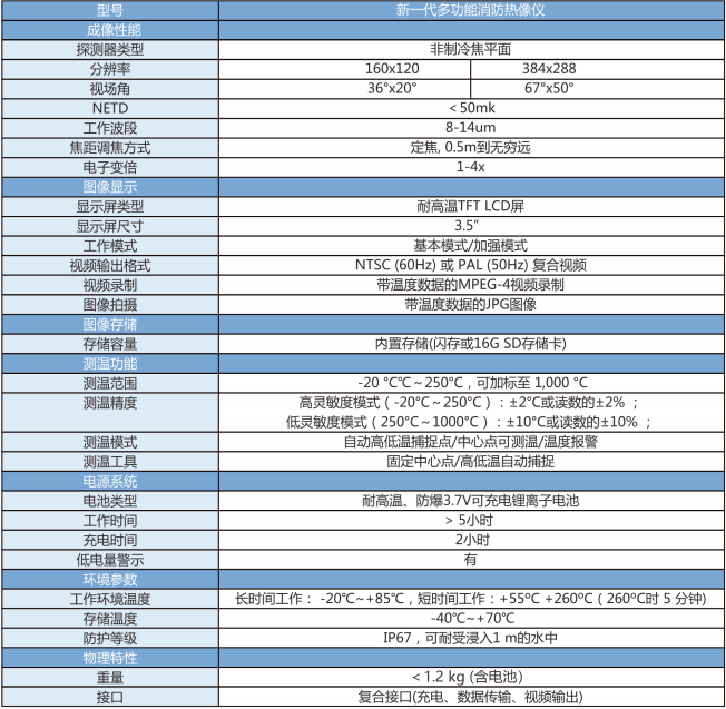 歐洲SATIR GF5000新一代多功能消防熱像儀 產(chǎn)品參數(shù):