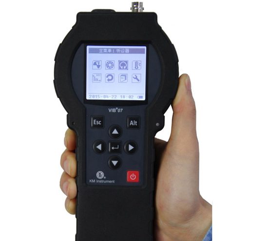 VIB07是設備維護人員得心應手的便利儀器。手持式的外觀體現了優異的人機工程學設計,傳感器,電纜,儀器及接口的每一個細節都經過精心考慮,滿足現場環境下的可靠和耐用要求。儀器操作通過簡潔的按鍵和顯示屏圖標界面完成。高分辨率高亮背光LCD顯示清晰,熒光按鍵使其能在黑暗環境下使用。鋰離子充電電池保證連續使用30小時以上。儀器可自由切換中英雙語版本。