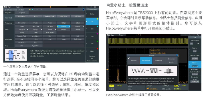 TBS2000數字存儲示波器加載了易于使用的功能。 如32種自動測量和波形上的光標讀數,您可以方便且準確地測試設計。