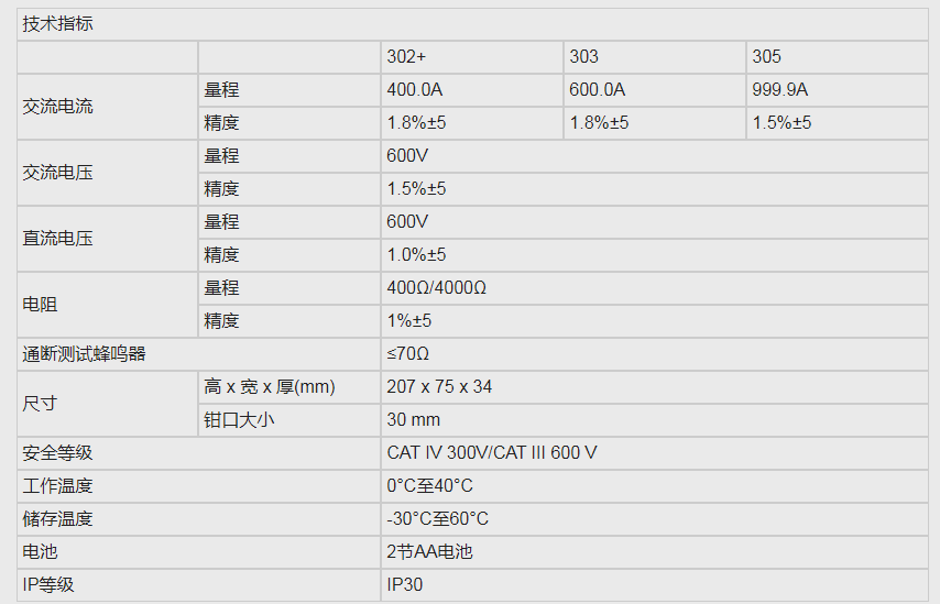 Fluke(福祿克) Fluke 305 鉗形表 產(chǎn)品規(guī)格: