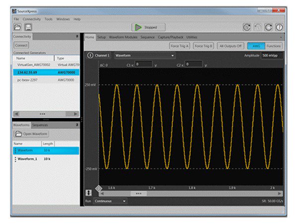 新型 SourceXpress 平臺把所有 AWG 儀器控制和波形生成功能放到 Microsoft? Windows PC 中。加載波形、創建序列、打開回放,都無須在 AWG 上實現。所有波形創建插件都在 SourceXpress 平臺上以原生方式運行,可以迅速重復測試信號,而不必進實驗室。