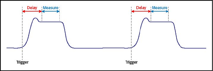 ?對快速變化或類似脈沖的負載進行時敏測量。外部觸發啟動采集??删幊萄舆t和測量次數支持 在指定時間對負載電流脈沖進行測量。