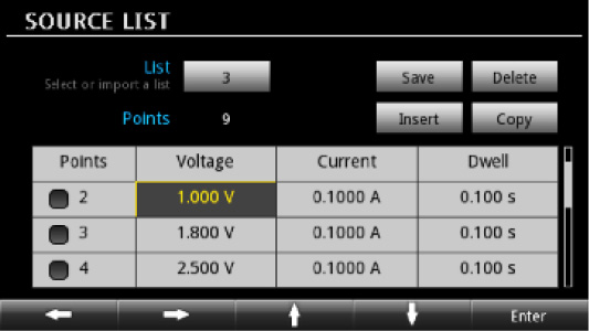 利用2280S系列電源的內建清單模式功能,可以在工作 電壓范圍對設計進行自動測試,并對直流輸出變化進行研究。 建立和保存10個序列電壓清單,每個清單最多可包括99個不 同的電壓。每個電壓電平的持續時間可以設置為短至1ms或 長達60s。通過前面板或接口總線,創建簡單的線性斜坡或任 意自定義配置。單一觸發器將一次或多次自動執行清單。
