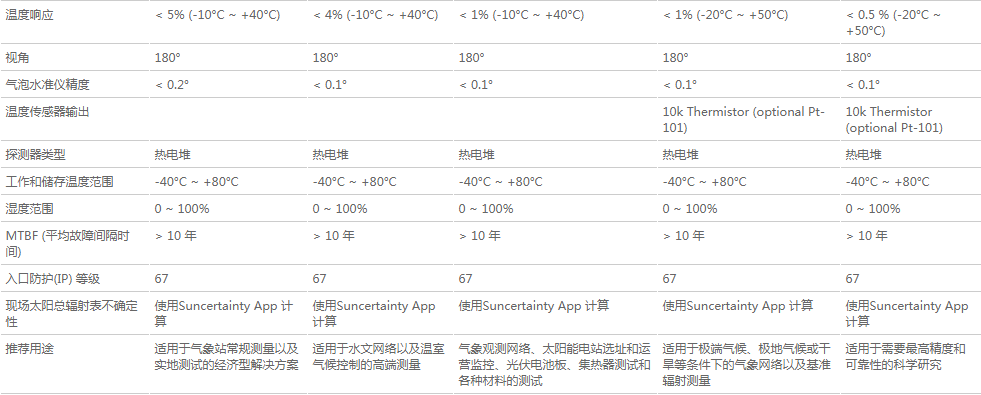 方向響應(最高至?80°,?1000?W/m??束) <?20?W/m <?15?W/m <?10?W/m <?10?W/m <?5?W/m