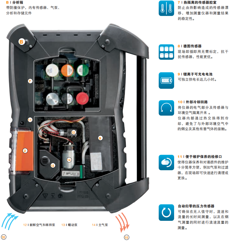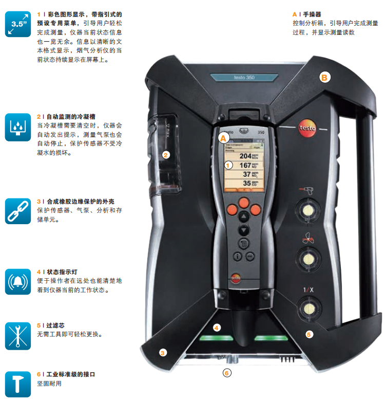 德國(guó)德圖 testo 350 煙氣分析儀藍(lán)色新版本 產(chǎn)品特點(diǎn):