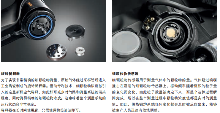 器將新鮮空氣和原始煙氣混合用于細顆粒物測量。探頭也可用于測量煙氣溫度和煙道抽力。探頭裝有伴熱模塊,加熱溫度為120℃,可有效避免煙氣中水汽在采樣探頭內冷凝。探頭可以被輕松地放置在儀器箱內或者從中取出。