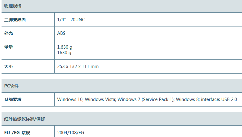 紅外分辨率 640 × 480 像素;采用SuperResolution紅外超像素技術后,可提升至 1280 × 960 像素;熱靈敏度< 40 mK