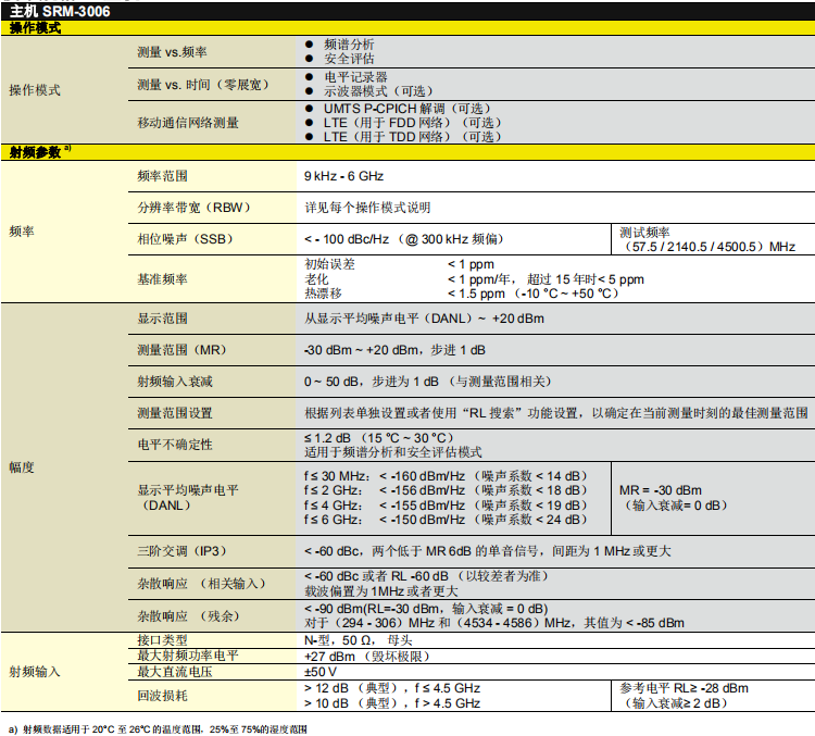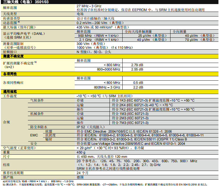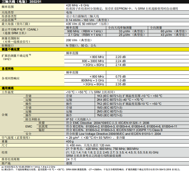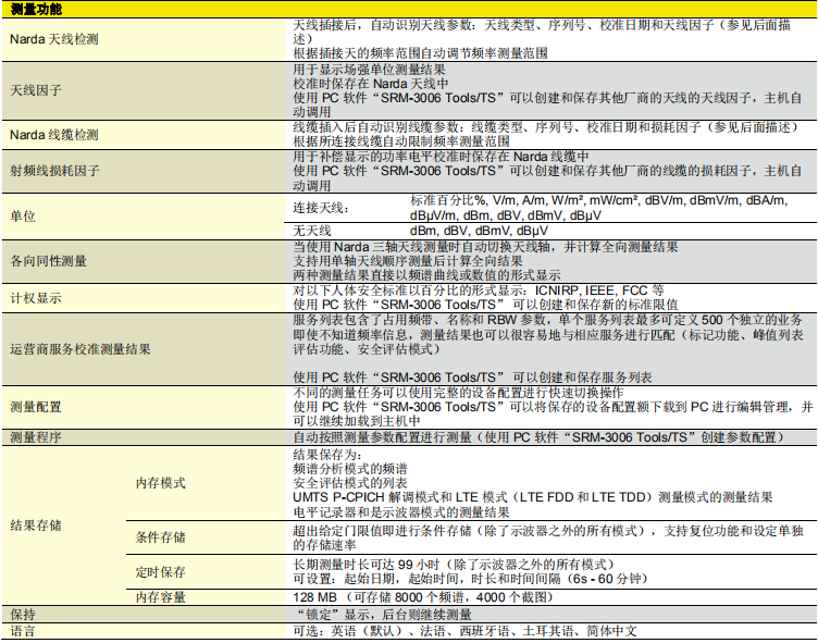 德國Narda SRM-3006 電磁輻射選頻分析儀 相關(guān)參數(shù):