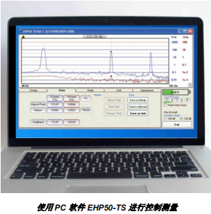通過光纖連接可以使用基于 Windows 的 PC 軟件 EHP50-TS 控制EHP-50F 進行操作測量,這種模式是實驗室測量和詳細(xì)展示結(jié)果頻譜的理想選擇。與 NBM 控制測量方式相比,EHP50-TS 軟件還提供了其他的測量特性,例如: