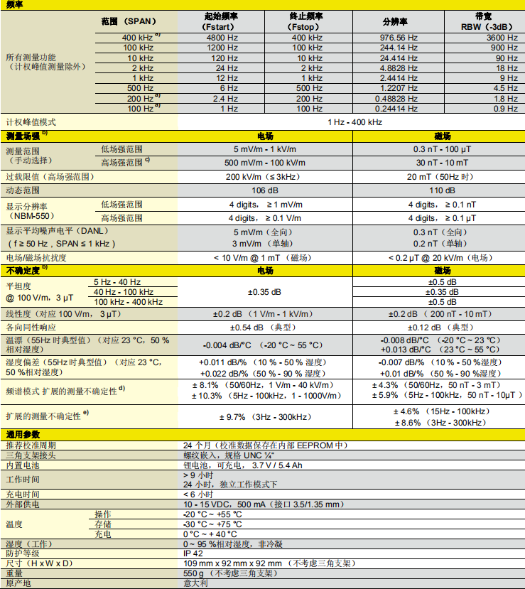 德國Narda EHP-50F 低頻電磁輻射分析儀 相關(guān)參數(shù):