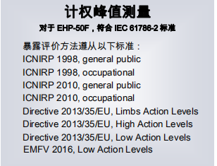 符合 ICNIRP 2010, ICNIRP 1998 和EMF Directive 2013/35/EU 標(biāo)準(zhǔn)的計權(quán)峰值測量模式