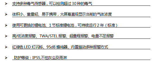 支持傳感器 超過30種可以即插即用的智能傳感器,包括射線、ppb和ppm的PID傳感器、電化學毒氣傳感器和氧氣、催化燃燒傳感器和紅外可燃氣、CO2紅外傳感器