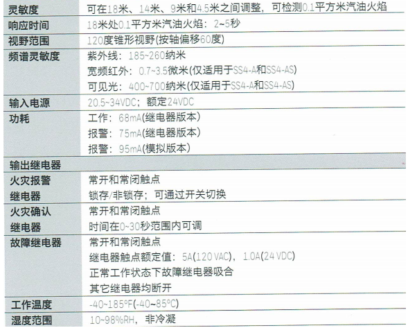 霍尼韋爾 Fire Sentry SS4火焰探測器 相關參數: