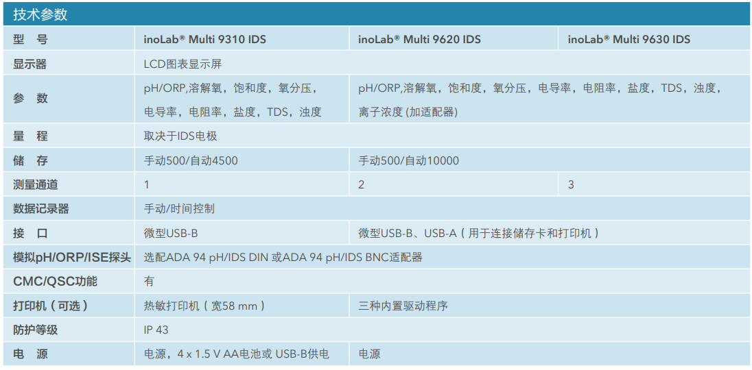 賽萊默XYLEM inoLab Multi 實驗室pH/ORP/電導(dǎo)率/溶解氧/濁度/ISE離子濃度多參數(shù)分析儀產(chǎn)品技術(shù)參數(shù):