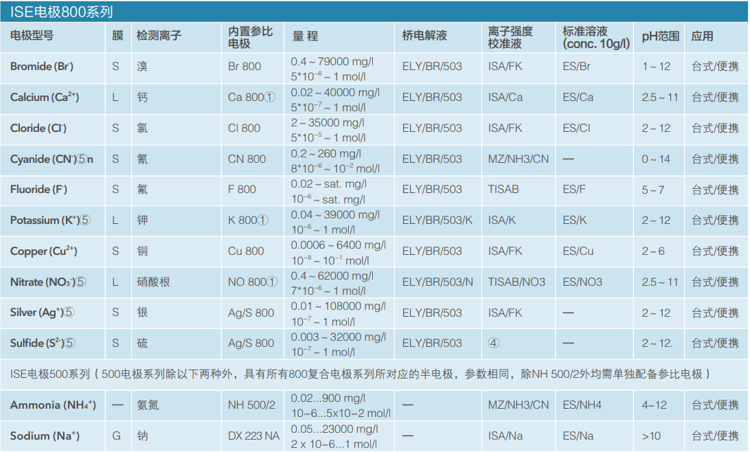 ① 交換測(cè)量頭 ② S=固態(tài)電極,L=矩陣電極,G=玻璃電極 ③滴定法 ④根據(jù)操作說(shuō)明使用 ⑤其它所需試劑的配方在應(yīng)用程序和操作說(shuō)明中