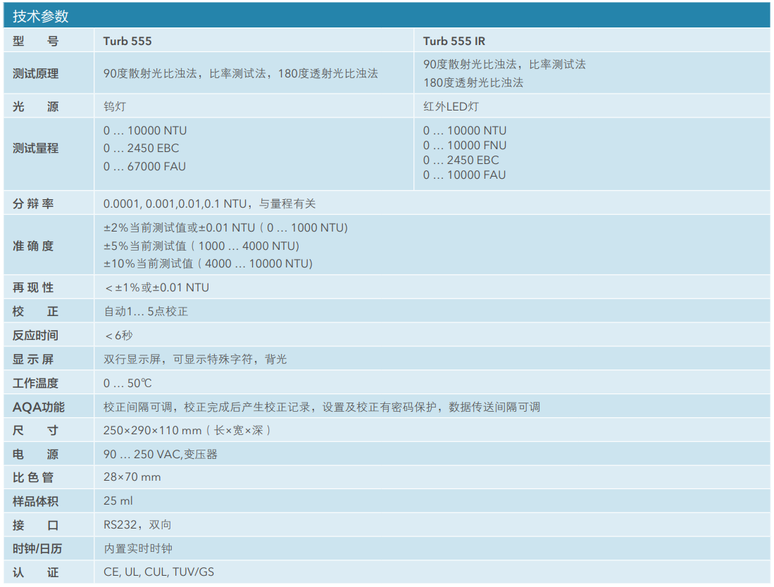 ■ 同 Turb 555,不過光源為紅 外LED燈, 符 合 ISO 7027/DIN 27027規定。