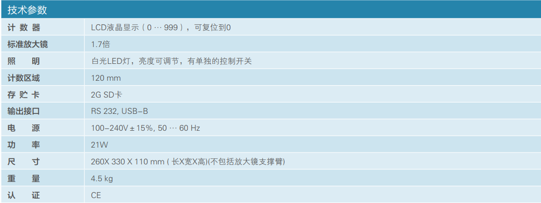 賽萊默XYLEM 菌落計數(shù)器產(chǎn)品技術(shù)參數(shù):?