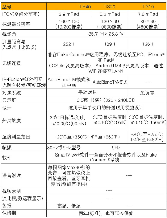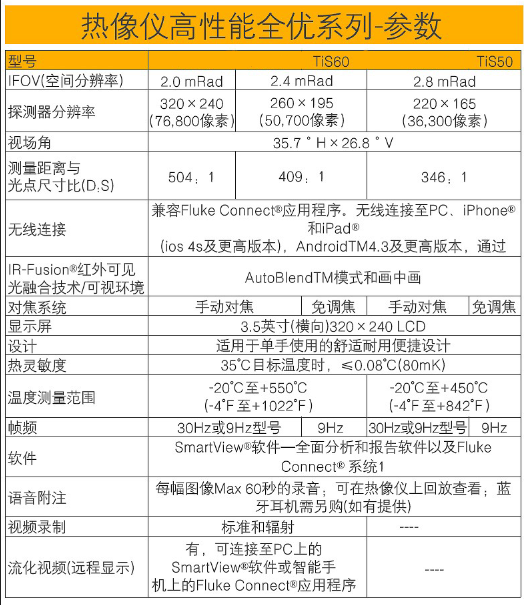 美國Fluke TiS60/50/40/20/10 紅外熱像儀 相關參數: