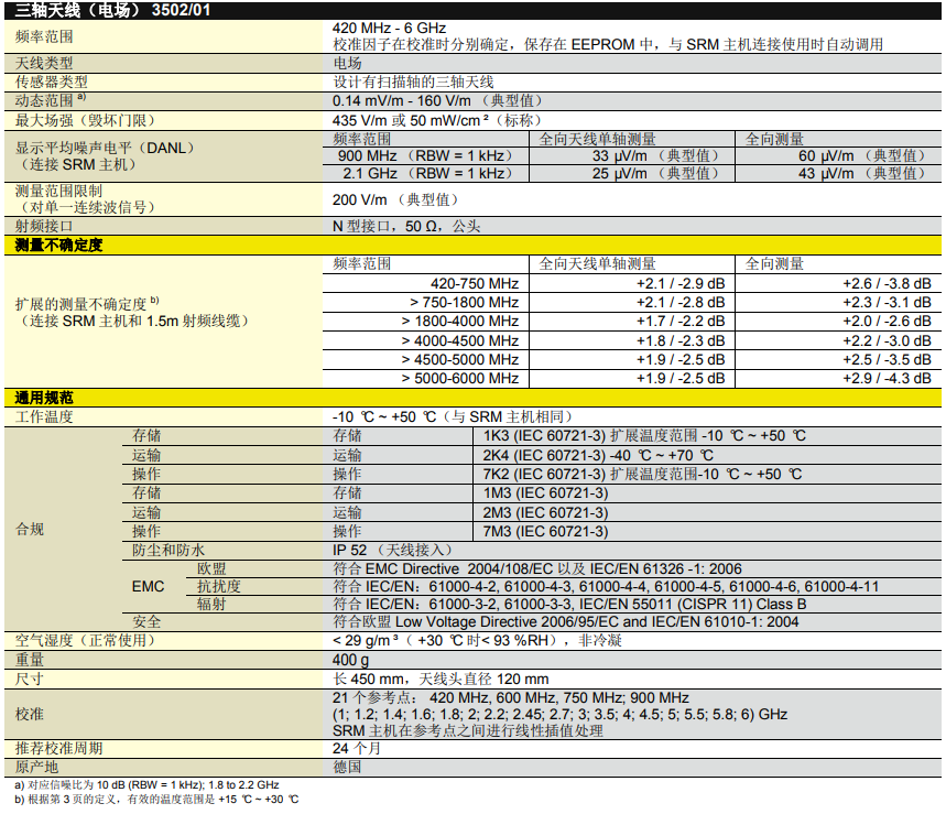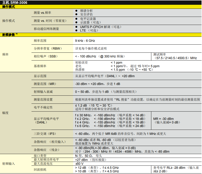 德國(guó)Narda SRM3006選頻電磁輻射分析儀產(chǎn)品技術(shù)規(guī)格:?