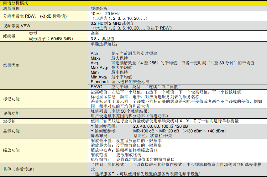 評(píng)估功能 峰值列表(多達(dá)50個(gè)峰值結(jié)果)?用戶設(shè)定頻率范圍的積分功率(信道功率)