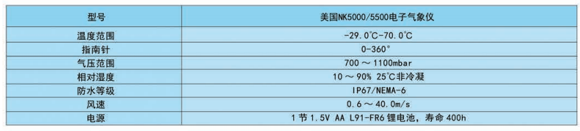 美國kestrel NK5000/5500電子氣象儀 相關(guān)參數(shù):