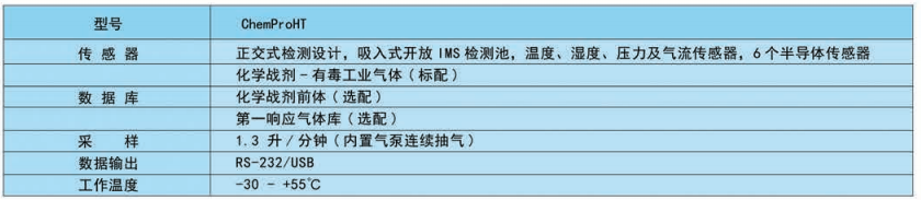 芬蘭Environics ChemProHT手持式化學戰劑探測器 相關參數: