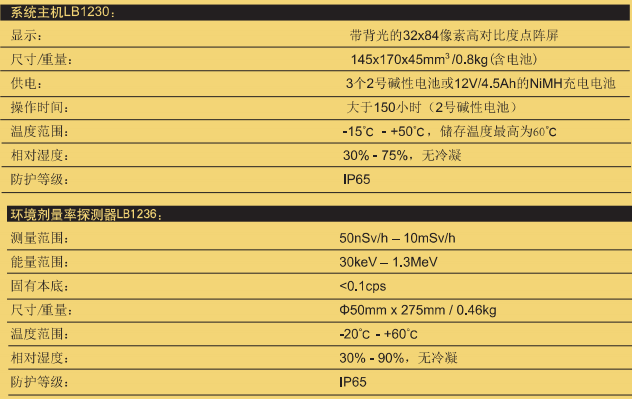 德國伯托 便攜式環境劑量率測量儀LB123D 技術參數: