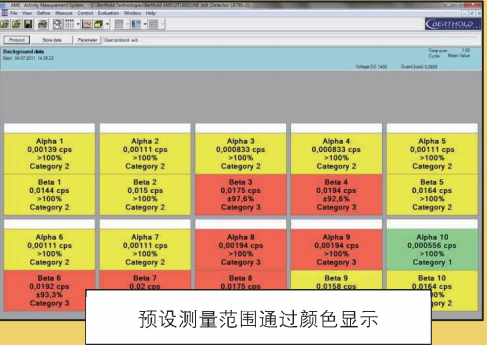 –可預測與顏色報警等級匹配的不同測量范圍,根據背景顏色直觀顯示當前樣品的放射水平(見圖)