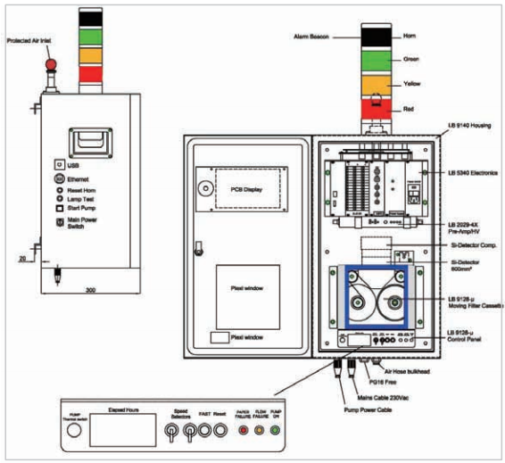 LB9140用于連續(xù)測量空氣αβ放射性氣溶膠,主要組成部分為: